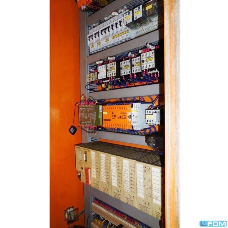 CONTROLS PLC SIEMENS S7 300 PRESS DESIGN drive system: hydraulic PRESS FORCES total force (nominal): 800 to PRESS TABLE table surface (left-right): 2600 mm table surface (front-back): 2000 mm height above floor level: 540 mm SLIDE stroke: 900 mm SLIDE (HYDR. PRESS) approximation velocity max.: 460 mm/s working velocity min.: 25 mm/s working velocity max.: 44 mm/s return velocity max.: 460 mm/s TOOL ASSEMBLY DIMENSIONS shut height (stroke down, adjustment up), BDC: 1700 mm ELECTRICAL SPECIFICATIONS total power consumption: 180 kW DIMENSIONS / WEIGHTS total weight approx.: 95000 kg ATTACHMENTS (PRESSES) press automation: yes gripper transfer system: yes acc. to actual accident protection ...