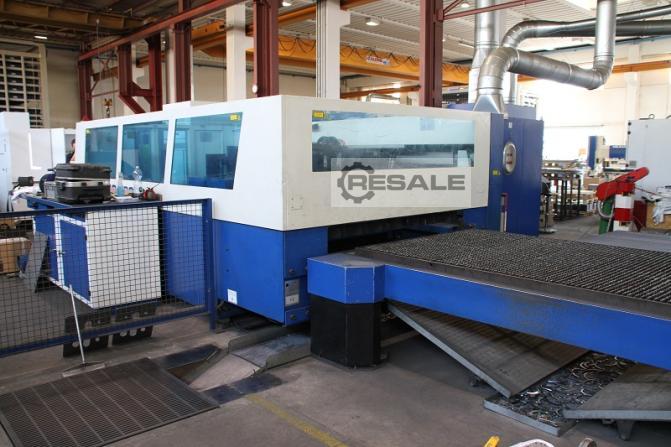 Combined Trumpf Trumatic 6000 TruFlow 2000 Co2 laser Preventive maintenance is carried out on the machine by Trumpf annually. installed January 2002 working hours 55734 laser on 16875 Field of work: combined exercise 2585x1280 punch press exercise 2585x1370 laser exercise 2585x1280 Performance: maximum sheet thickness 8mm punching force 220KN active blank holder (programmable) 4,5 - 20kn maximum piece weight 200kg passage height: in punching exercise 35mm in operation of laser 22mm workable materials of laser: iron maximum thickness 8mm stainless steel maximum 4mm aluminum maximum 3mm Speed': x-axis 90m/min y-axis 60m/min simultaneous 108m/min number of trips punching 900min marking 2800min c axis punching 60rpm threading 330rpm Tools: tool places 21 with three collets rotation of all tools tool change time 1.5 -5 seconds max folding height ...