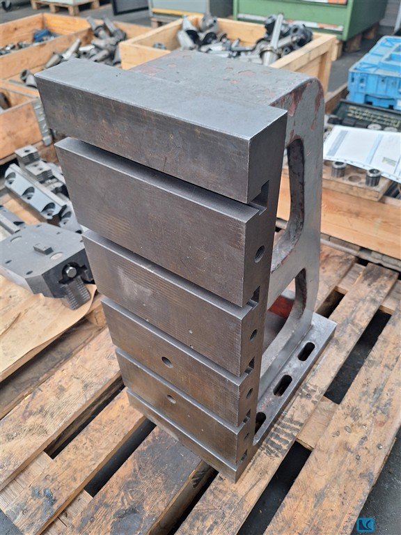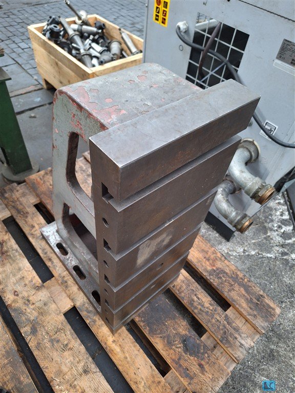 weight:400 kg 8 clamping jaws each ca. 600 x 210 x 170 mm , hole dia. 22 mm, center distance ca. 170 mm was used for clamping rings on a Vertical Turning Machine