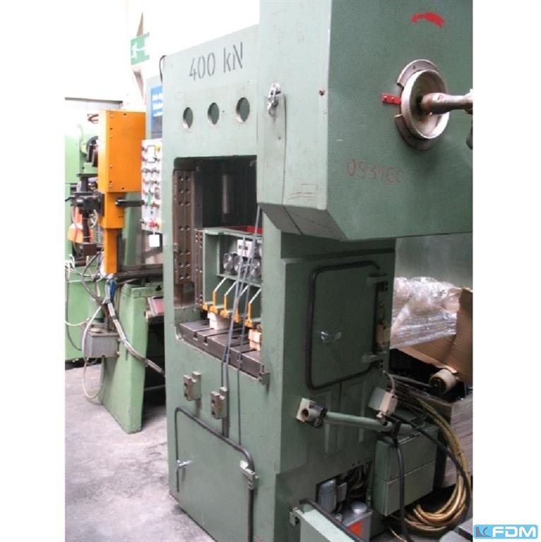 Crank press HECKERT PKZ 400.1 built in 1980. Technical data : - maximum pressing force: 400 t - working path - lower position of the slider to the maximum pressing force: 21 mm - maximum drawing depth: 125 mm - pressing force using the maximum drawing depth: 160 Mp - idle speed of the slider: 18 min-1 - maximum number of switchings: 9 min-1 - ram stroke (min-max): 315 mm - slider adjustment: 200 mm - holding force of the drawing device at air pressure: 63 Mp, 5 kp / cm2 - force of the drawing device ejector at air pressure: 10 MP, 7 kp / cm2 - total weight: 38.5 t