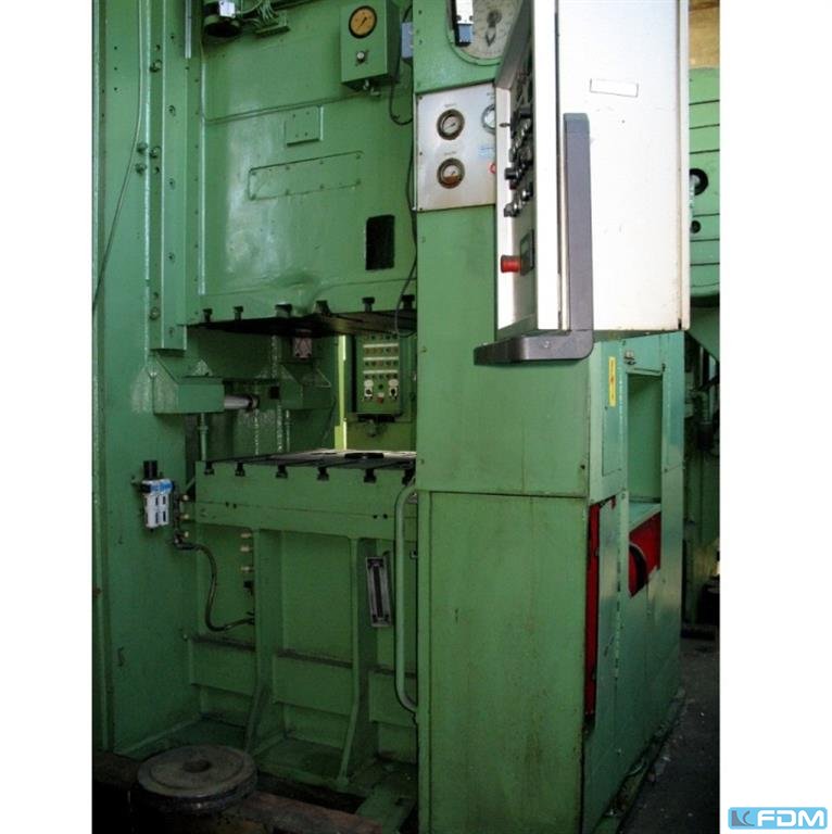 Technical data: -Compressive force 100 t -Throat 320 mm -Wide stand below the Guide 400 mm -Table size approx. 850 x 610 mm -Discontinued diarrhea hole in the table 335 / 300 mm -thickness of the table clamping plate 90 mm -gr. Height approx. 300 mm -Plunger area 600 x 335 mm -Adjustable height of the RAM 80 mm -Stroke adjustment 10-130 mm -Emissions er hub in the RAM 32 mm -Speed continuous operation approx. 56 / min -Drive 400 V / 11 kW -Space requirement approx. B H 1900 x 2800 X 2200 mm -Weight approx. 9000 kg Starring:-UVV press backup controller PREVENTA -Hydr. + pneumatically actuated clutch -LUTEX auxiliary braking system -Central lubrication