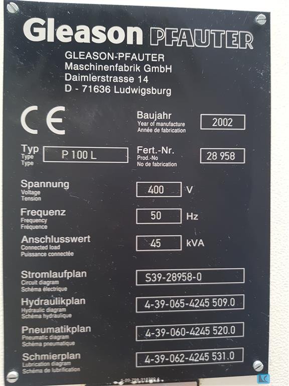 max. wheel diameter: 150 mm gear width: . mm max. module: 5 min. module: 0,5 Control: . total power requirement: . kW weight of the machine ca.: 10.000 t dimensions of the machine ca.: 6500 × 2700× 3600 m The data for this ad was created with ModulMWS - the software solution of LogoTech oHG.