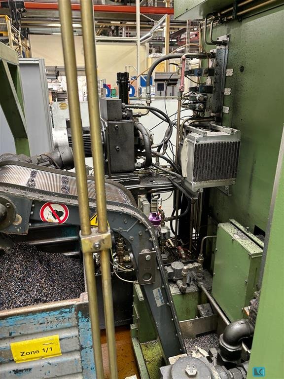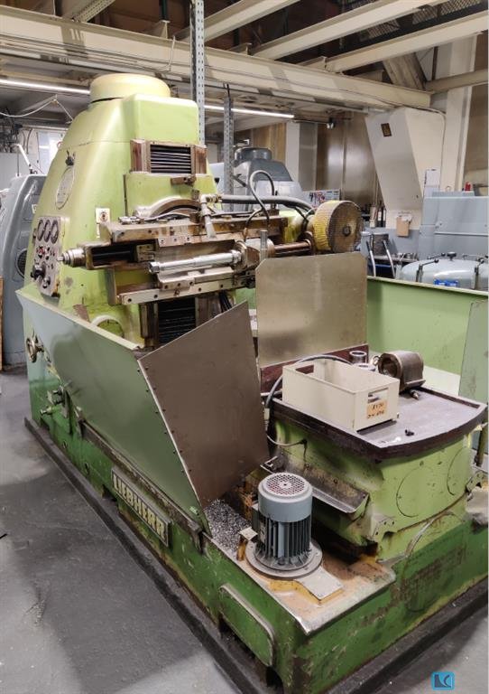 max. wheel diameter:300 mm max. module:7 weight of the machine ca.:15 t table turning speeds:100 U/min table diameter:180 mm hob turning speeds:750 U/min max. hob diameter:300 cutter length max.:230 mm Liebherr LC300 with loading automation Machine including counter holder The machine used to work with emulsion