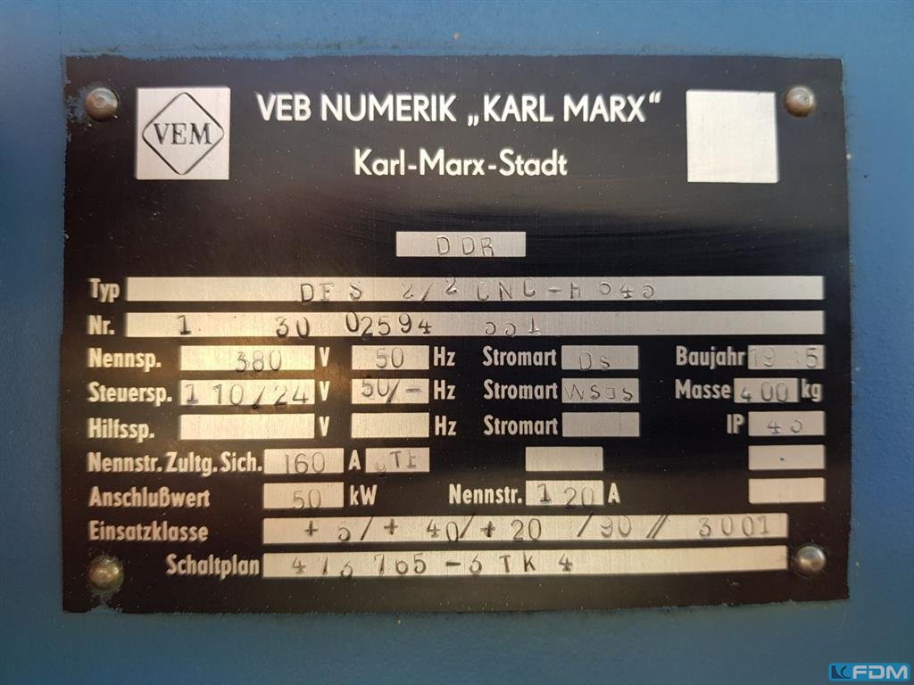 turning speed range: 2,24 – 224 U/min total power requirement: 55 kW weight of the machine ca.: 16 t faceplate diameter: 1250 mm - Face plate diameter: 1.250 mm - Peak height above foundation slab: 1.250 mm - Max. torque on the face plate: 31,500 Nm - Largest workpiece: 16.000 Kg - Speed range: 2.24 - 224rpm The data for this ad was created with ModulMWS - the software solution of LogoTech oHG.