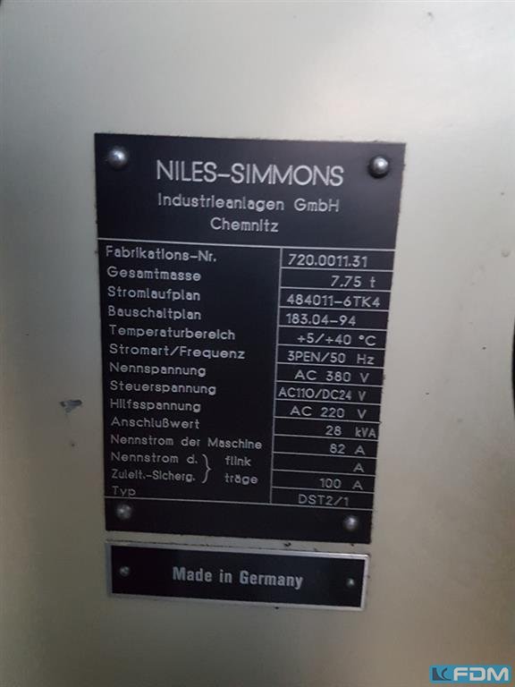 turning length: 3.000 mm greates pass round over bed: 810 - 760 mm swing diameter over slide rest: 740 mm control: SIEMENS - 840 C max. turning diameter: 800 mm turning diameter over slide: 740 mm travel -x2 axis: 875 mm travel -z2 axis: 3.700 mm CNC Turning- and Milling Center | NILES-SIMMONS - N40 MC / 3000 equipped with a well as travelling lynette and tailstock. Additional equipment: - Centering points, - Jaw sets, - Clamping jaws, The machine is in a well-maintained condition and can be inspected at any time under power. Please refer to further technical details in the attachement of the offer. - - - - - - - - - - - - - - - - - - - - - - - - - - - - - - - - - - - - - - - - #Tags: N-40 | N 40 | N40MC3000 | N40MC The data for this ad was created with ModulMWS - the software solution of LogoTech oHG.