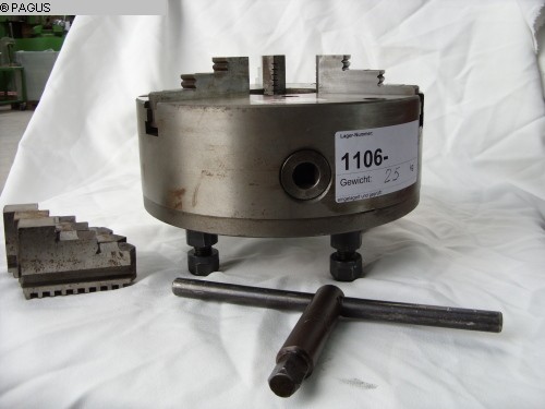 Three-jaw chuck, three-jaw lathe chuck, 3-jaw chuck -Mouth size: Ø 250 mm -Recess inlet: Ø 210 mm -Through hole: Ø 80 mm -Weight: 18 kg