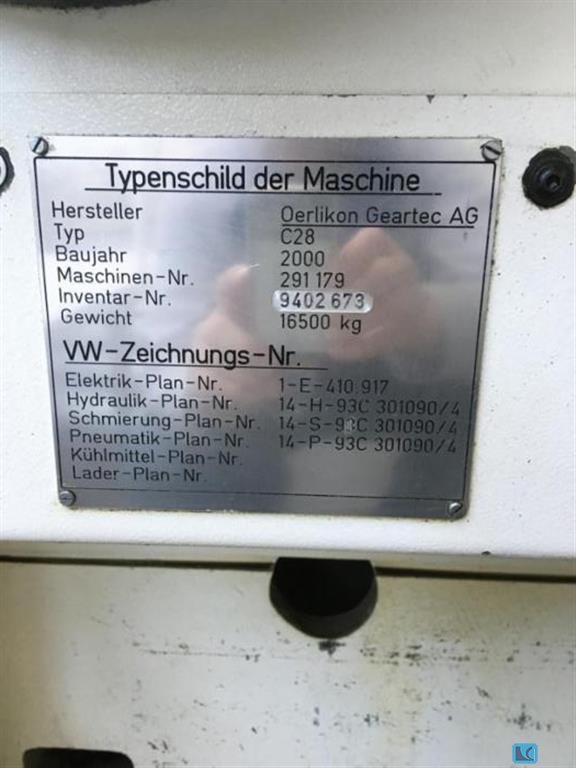 max. wheel diameter: 500 mm Hypoid adjustment: ±70 mm axial cross angle: 90 ° Distance Y-: 150 - 350 mm Distance Z-axis: 120 - 340 mm turning speed range - stepless: 0 - 5000 U/min max. torque on the spindle: 57 Nm Cone: 99,2 mm Pull-in force Tool clamping: 23000 N Braking torque max.: 93 Nm total connected load: 20 kVA total power requirement: 15 kW weight of the machine ca.: 6 t dimensions of the machine ca.: 2,35 x 2,24 x 2,5 m The data for this ad was created with ModulMWS - the software solution of LogoTech oHG.