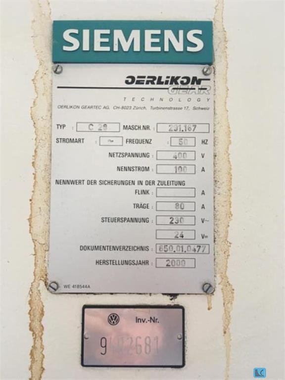 max. wheel diameter: 1000 mm gear width: 630 mm max. module: 16 min. module: 1 wheel diameter with counterstay: 800 mm max. number of teeth: 999 clamping length: 1060 mm workpiece weight: 1500 kg max.helical angle: 45 ° grinding spindle drive: ca. 20 kW Control: Opal / Siemens total power requirement: 70 kW weight of the machine ca.: 17,5 t - CNC control Opal / Indramat with Siemens S5 PLC - paperbandfilter - oil mist exhauster - complete covering The data for this ad was created with ModulMWS - the software solution of LogoTech oHG.