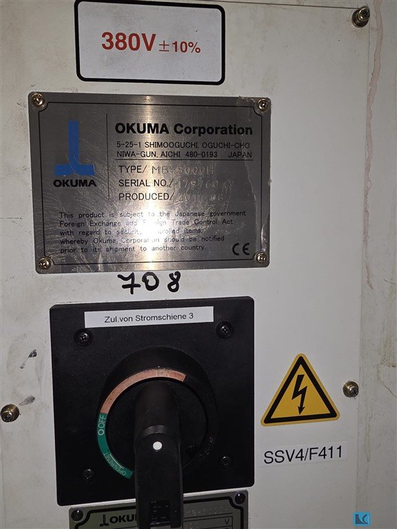 x-travel: 1040 mm y-travel: 508 mm z-travel: 560 mm Control: Okuma type: OS 5020 M Table load: 1000 kg spindle taper ISO: 50 turning speeds: 5000 U/min table surface area: 508X1300 mm total power requirement: kW weight of the machine ca.: t dimensions of the machine ca.: m The data for this ad was created with ModulMWS - the software solution of LogoTech oHG.