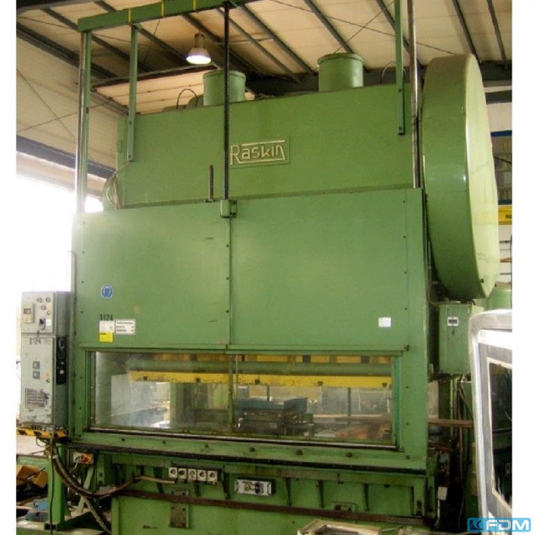 RASKIN RT 64-2 punching machine manufactured in Switzerland in 1981, is designed for precise punching of holes in workpieces made of e.g. stainless steel, with a force of 30 tonnes. Technical parameters of the RASKIN RT 64-2 punching machine - maximum press force: 30 t - CNC control - number of strokes: 400/min - power supply of machine RT 64: 3x 380 V; 50 Hz
