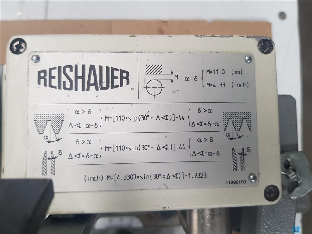 max. wheel diameter: 0 mm gear width: 120 mm max. module: 3 min. module: 1 total power requirement: 20 kW weight of the machine ca.: 7,5 t dimensions of the machine ca.: m : : : : : : 5 machines in stock, YOM: between 1986 and 1990 Gear Æ, min./max. 55 / 120 mm Gear Æ for shaft-formed parts 80 mm Module (pitch 25.4 - 8.5) 1 - 3 No. of teeth, min./max. 13 / 80 Pressure angle 14 - 30 ° Helix angle, max. 40 ° Workpiece clamping length 145 - 420 mm Grinding worm Æ 300 - 400 mm Grinding worm width 25 - 40 mm Grinding worm speeds, infinitely variable (35 m/s) 1,650 rpm Feed range 0.4 - 4 mm/rev Total electrical load 20 kW - 380 V - 50 Hz Weight 7,500 kg Accessories / Special Features REISHAUE ...