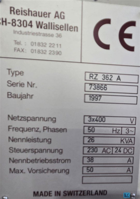 Reishauer RZ 362A Built in 1999 Accessories: 2x Fässler dressing device Diamond Wheels Whetstones Turbo separator