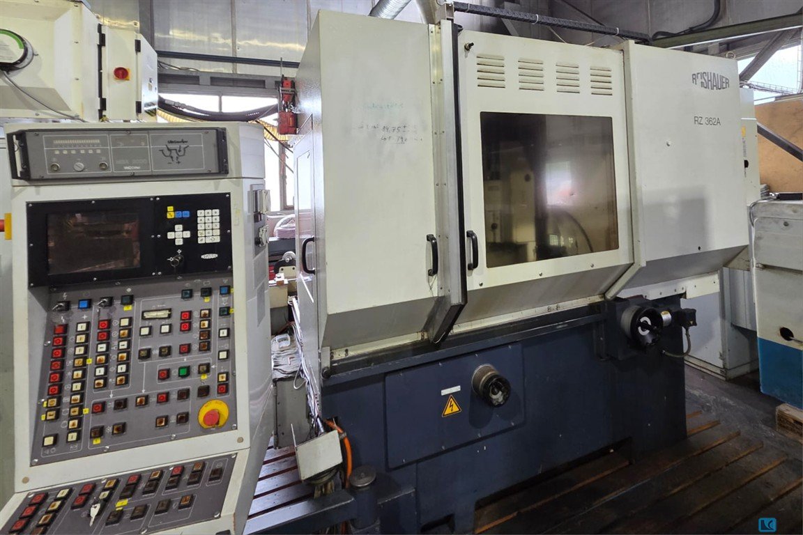 A gear flank grinding machine Reishauer, completely overhauled by Burri Werkzeugmaschinen, is available. Grinding spindle speed: 3500rpm, cutting speed: 63m/s, max. gear diameter: 360mm, module range: 0.1-7, number of teeth: 6-600, max. workpiece height: 160mm, max. helix angle: +/-45°, max. workpiece weight: approx. 60kg. Min. wheel root circle diameter: 250mm, grinding wheel dimensions X/Y/Z: 350mm/104mm/160mm, grinding worm diameter range: 270mm-350mm, max. grinding width: 175mm, max. workpiece speed: 800rpm. Includes profiling devices, balancing device, structure-borne noise contact control, compact filter system, cooling unit, cooling water recooler, robot automation, and transport trolleys. Documentation available. An on-site inspection is possible.