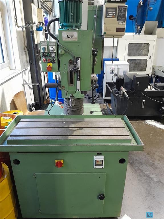 bore capacity in steel (diameter):1-13 mm The machine has a 2.2 kW spindle motor with a 2-stage gearbox for drilling and tapping. Table size is 100 x 50 cm Stroke length approx. 200 mm