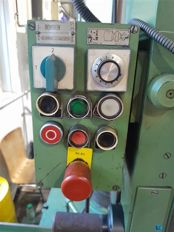 bore capacity in steel (diameter): 32 mm arm length: 950 mm turning speed range: 102 - 2000 U/min turning speeds steps: 12 bore spindles - Morse Taper: MK 4 quill stroke: 160 mm feed range: 0,075 x 0,3 mm/min table surface area: 1200 x 510 mm total power requirement: 2 kW weight of the machine ca.: 1,9 t dimensions of the machine ca.: 1,8 x 1,2 x 2,25 m Compact style with hydraulic fast-clamping, motorised height adjustment, feeder device and thread-cutting device. Integrated coolant container in machine frame. Main switch. The data for this ad was created with ModulMWS - the software solution of LogoTech oHG.