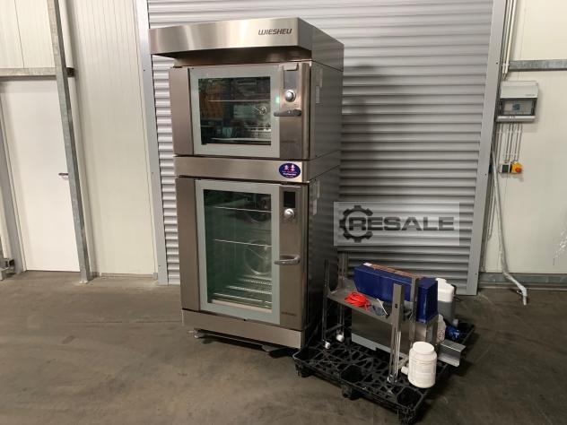 In-store oven Wiesheu B10 Dibas 2 Hot air oven Wiesheu Dibas for 10 trays 60x40cm with fermentation cabinet and exhaust air hood including steam condenser immediately available in the warehouse for sale. -Oven is for 10 trays 60x40cm -with automatic door -with IS600 control -Year of construction 2006 -Rated current 26.6 A -Power: 18.4 kW -Proofing cabinet for 20 sheets 60x40cm -Model : GS2 ED60/40 0700_A-BJDBA -Year of construction 2009 -Connection: 2.1 kW Dimensions: Width: 93cm Depth: 105cm Height 218cm